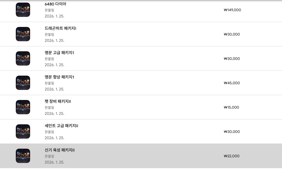 “구글 플레이를 통해 결제된 린M잊혀진유산 관련 금액을