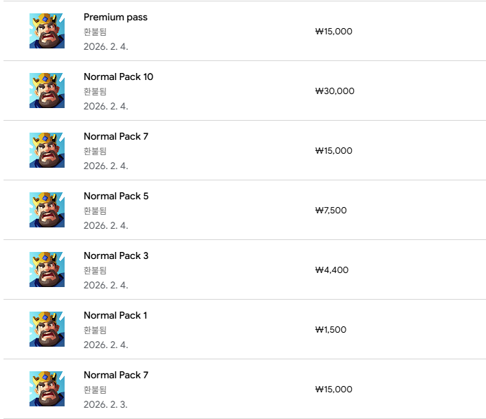그 안에는 구글 플레이 결제, 게임(킹샷) 이용, 환불 요청, 그리고 처리 완료라는 흐름이 압축되어 담겨 있는 것으로 보입니다.