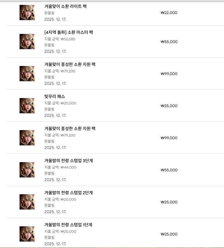 환불이 이루어졌는지에 대한 개별적인 이야기가 담겨 있습니다.