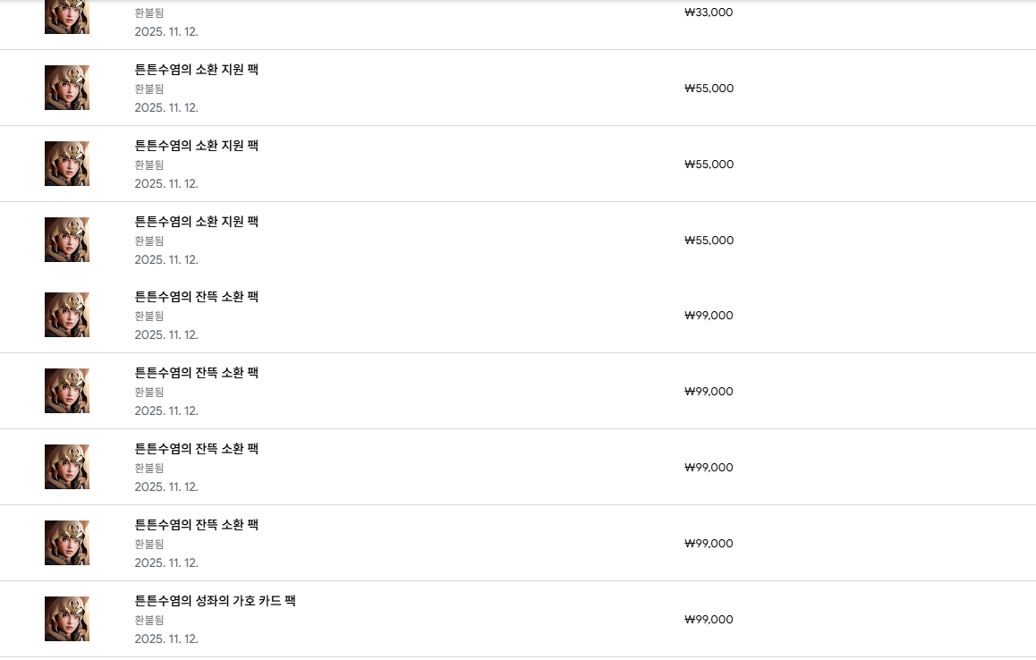 게임 내 결제가 여러 번 이루어질 수 있는 환경에서는