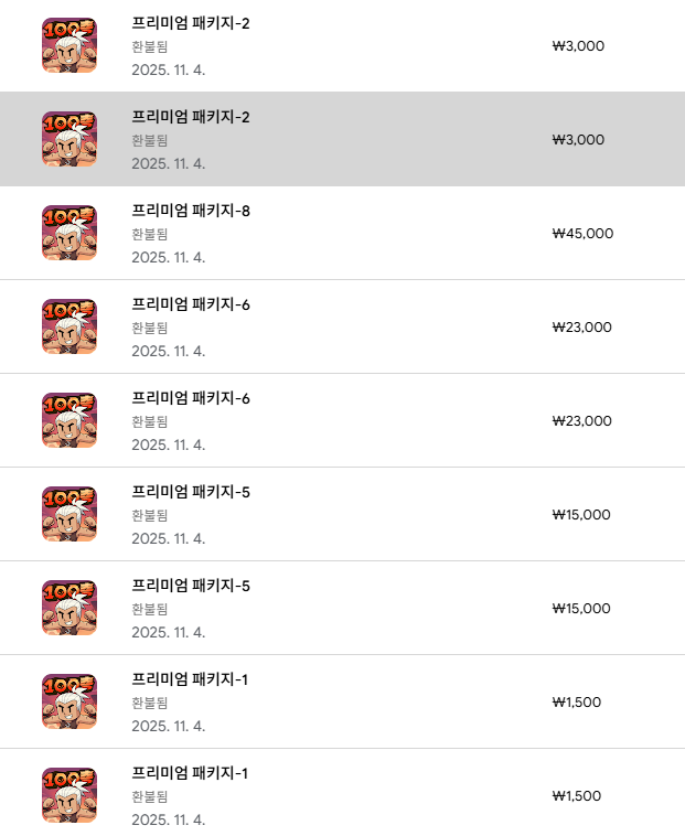 구글을 통해 결제한 와다다 던전런 아이템이나 패키지의 환불은
