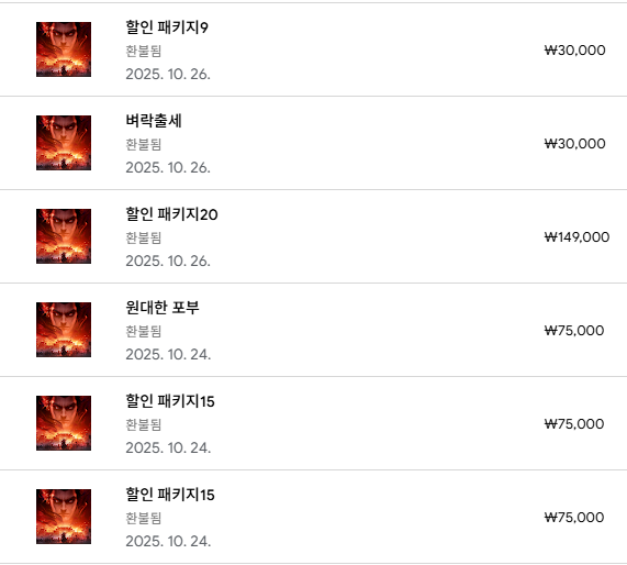 과금 후 예상과 다른 게임 진행이나, 실수 결제, 혹은 마음이 바뀌는 등
