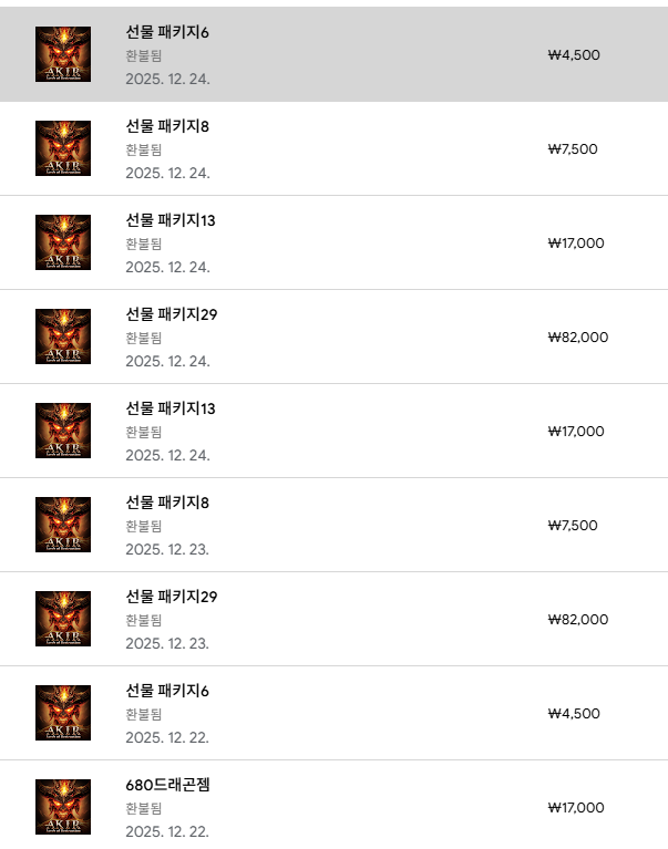 플랫폼(구글 플레이) 결제 내역이었습니다.