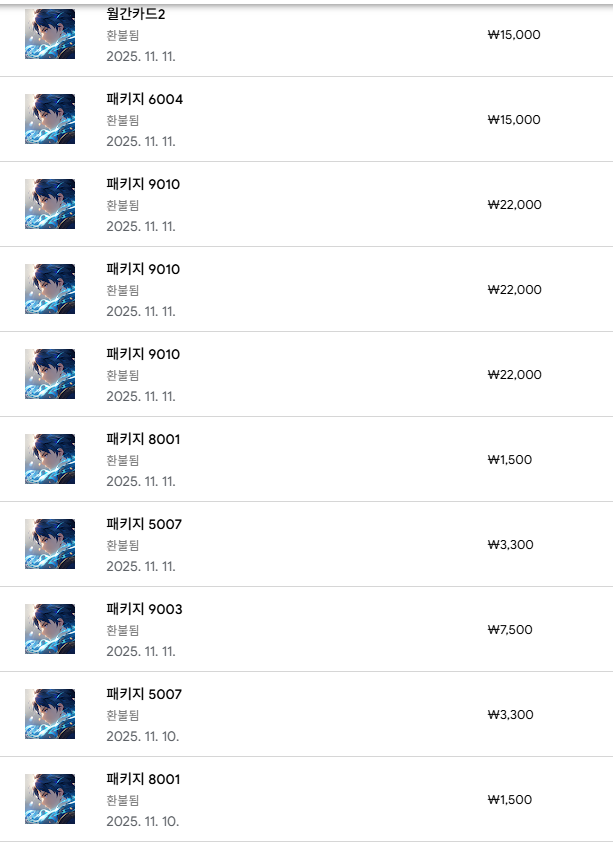 구글 플레이를 통해 아이템이나 패키지를 결제하는 경우가 많습니다.