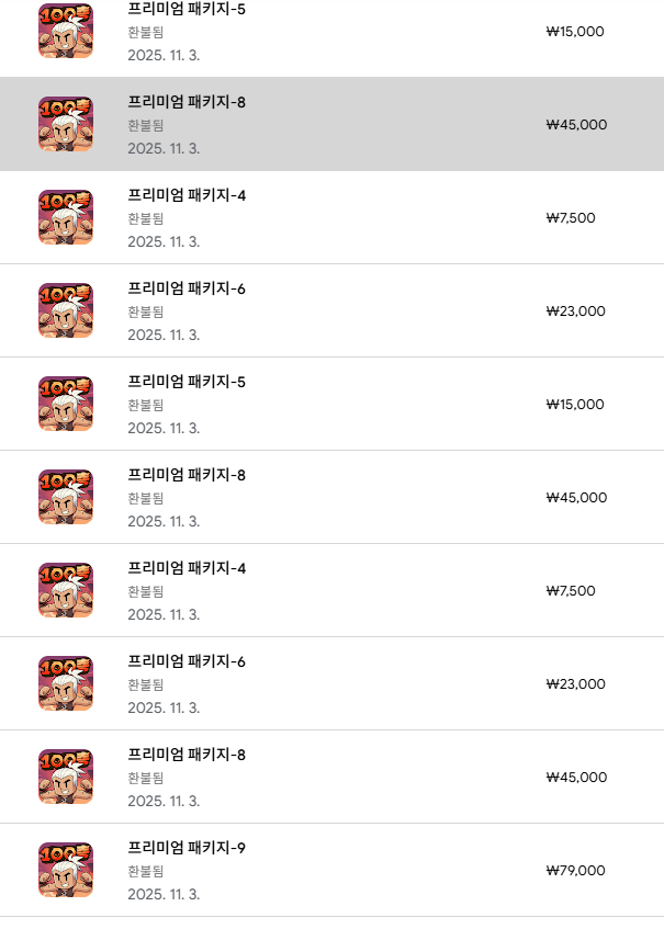 구글을 통해 결제한 와다다 던전런 아이템이나 패키지의 환불은