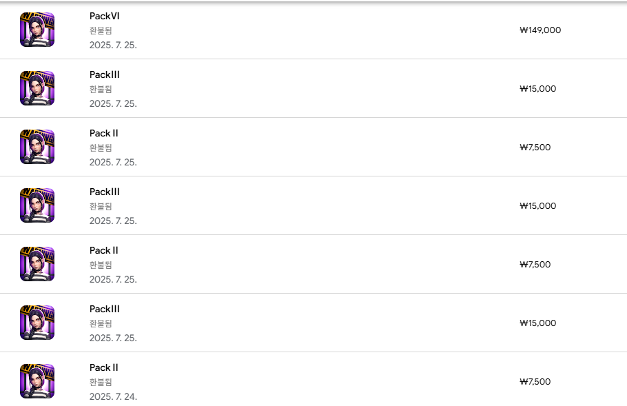 구글에서 이루어지는 게임 결제 환불은