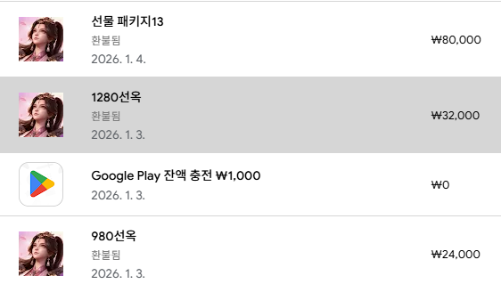 우선 구글 플레이에서 결제 내역을 확인하고,